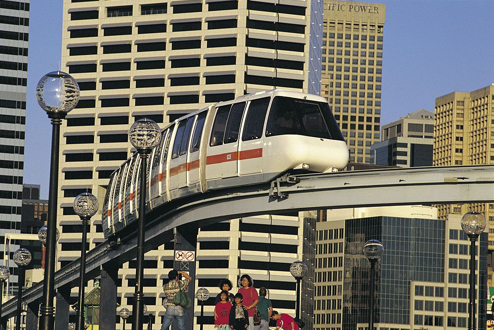Monorail train on Pyrmont Bridge near Harbourside Station |