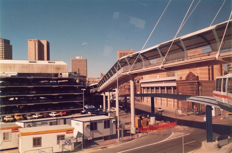 Monorail in Market Street with Centrepoint Tower (58k) |